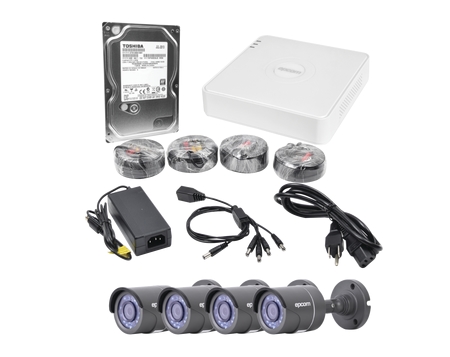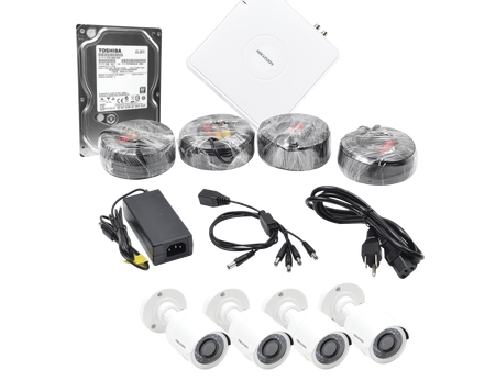 Disco duro 1 TB + Sistema Completo de CCTV 720p / Hik-Connect / DVR 4 Canales / 4 Camaras Bala / Cables / Fuente de Poder