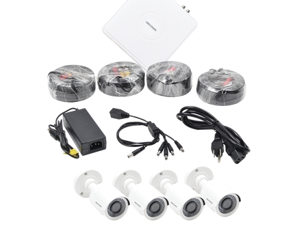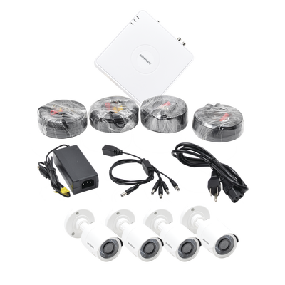 Sistema Completo de CCTV 720p / Hik-Connect / DVR 4 Canales / 4 Cámaras Bala / Cables / Fuente de Poder Profesional
