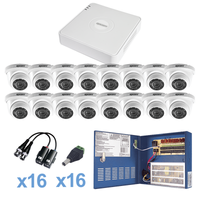 Sistema TURBO HD720p / DVR 16 Canales / 16 Cámaras Eyeball (interior 2.8 mm) / Transceptores / Conectores / Fuente de Poder Profesional