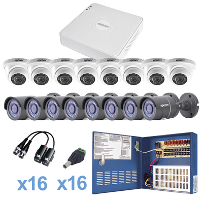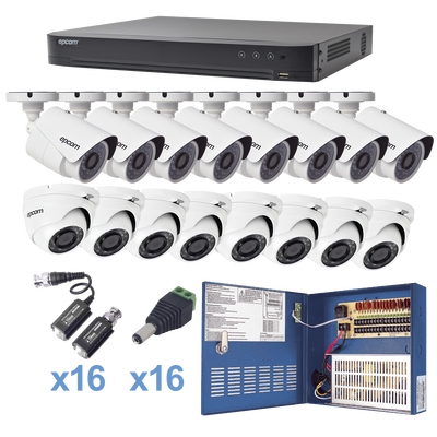 Sistema TURBOHD 1080p / DVR 16 Canales / 8 Cámaras Bala (exterior 2.8 mm) / 8 Cámaras Eyeball (exterior 2.8 mm) / Transceptores / Conectores / Fuente de Poder Profesional