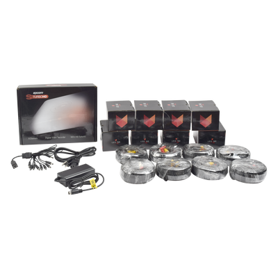 Sistema TURBO HD720p / DVR 16 Canales / 8 Cámaras Bala (exterior 3.6 mm) / 8 Cámaras Eyeball (interior 2.8 mm) / Transceptores / Conectores / Fuente de poder profesional Heavy Duty 20A, Hasta 15Vcd para Larga Distancia