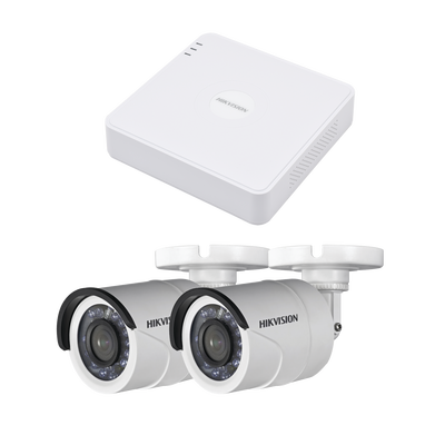 Sistema TURBOHD 720p / DVR 4 Canales / 2 Cámaras Bala (interior - exterior 3.6 mm) / Hik-Connect