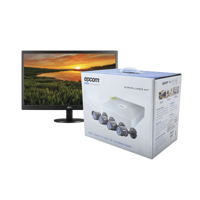 Sistema Completo de CCTV 720p / Hik-Connect / DVR 4 Canales / 4 Cámaras Bala / Cables / Fuente de Poder Profesional + 1 Monitor 16" USB